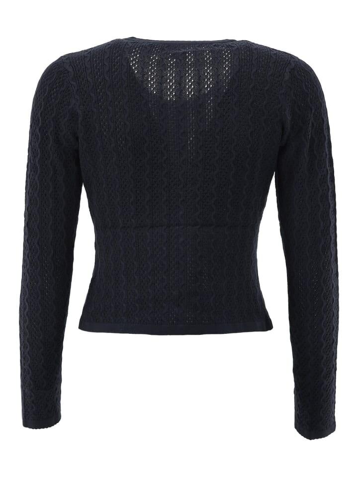 Традиционный кардиган для теплого времени года: выполнен из легкой в уходе смесовой ткани. Жакет действительно подчеркивает широкую юбку. Традиционные декоративные металлические пуговицы характеризуют этот высококачественный предмет одежды.