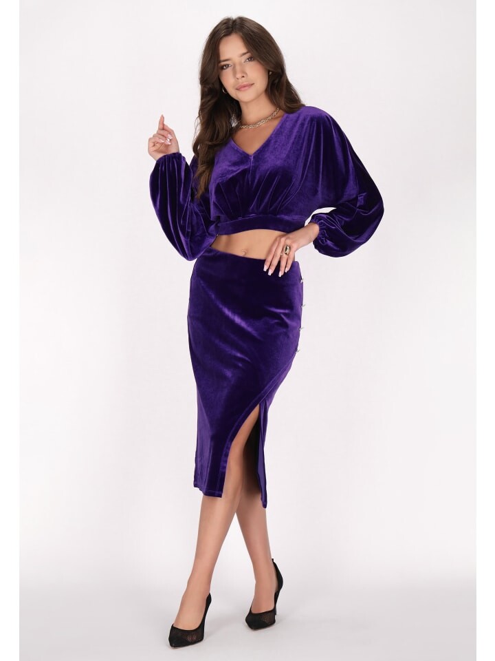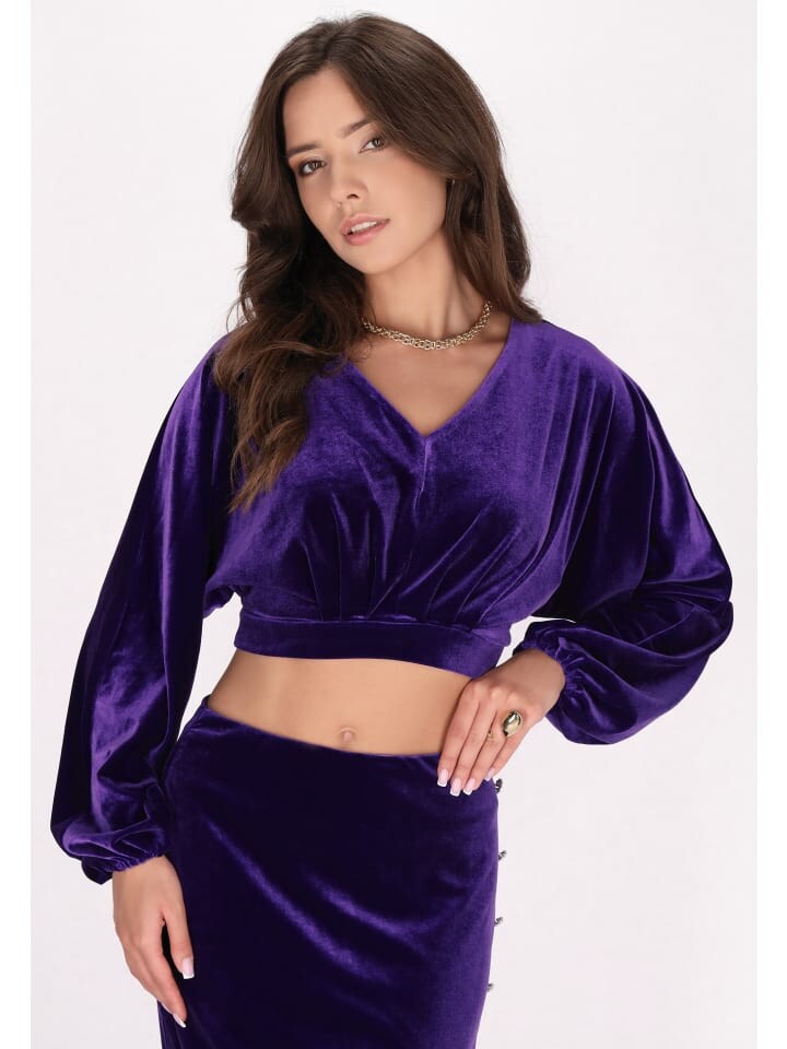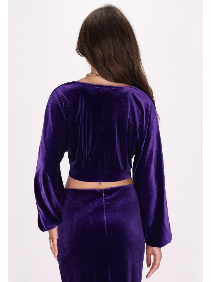 Украсьте свой вечерний образ этой элегантной укороченной бархатной блузкой. Эта блузка с глубоким V-образным вырезом и длинными рукавами-колокольчиками излучает изысканность. Зауженная талия и укороченный подол создают эффект развеваемости. Эта бархатная блузка со светоотражающим блеском, идеально подходящая для вечернего выхода, обязательно привлечет внимание. Этот продукт является частью коллекции Velvet
