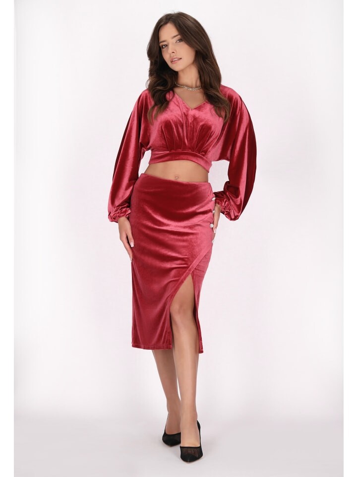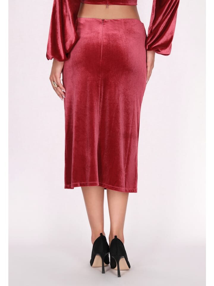 Эта элегантная юбка-карандаш миди незаменима в вашем гардеробе на выход. Эта бархатная юбка с высокой талией и приталенным силуэтом излучает изысканность. Разрез с одной стороны добавляет очарования, а декоративное кружево подчеркивает привлекательность. Эта стильная юбка идеально подойдет как для вечеринки, так и для работы. Она идеально подчеркнет ваш образ. Этот продукт является частью коллекции Velvet