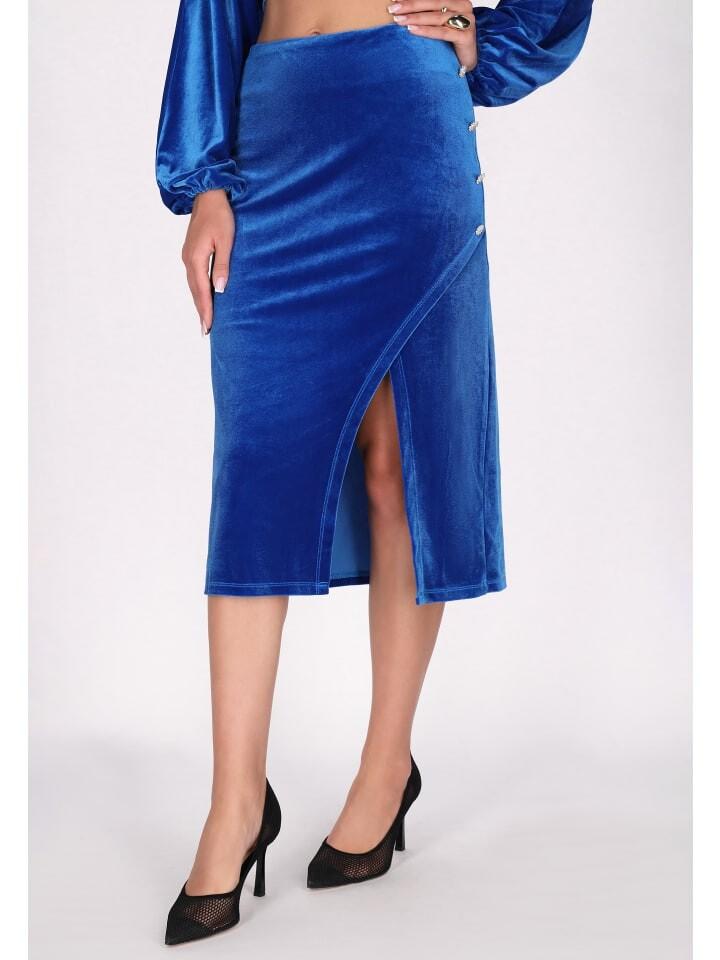 Эта элегантная юбка-карандаш миди незаменима в вашем гардеробе на выход. Эта бархатная юбка с высокой талией и приталенным силуэтом излучает изысканность. Разрез с одной стороны добавляет очарования, а декоративное кружево подчеркивает привлекательность. Эта стильная юбка идеально подойдет как для вечеринки, так и для работы. Она идеально подчеркнет ваш образ. Этот продукт является частью коллекции Velvet