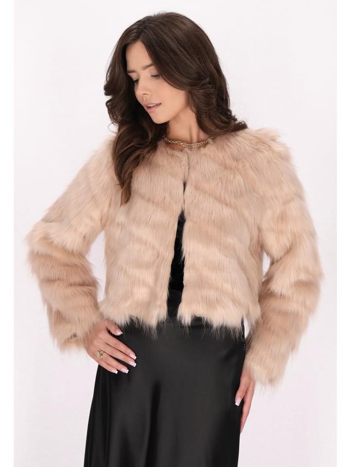 Эта укороченная куртка имеет роскошный модный дизайн и пушистую текстуру. Многоярусные горизонтальные слои и круглый вырез придают ему шикарный вид. Длинные рукава и плюшевый материал делают их идеальными для стиля и тепла - незаменимый предмет в любом гардеробе.