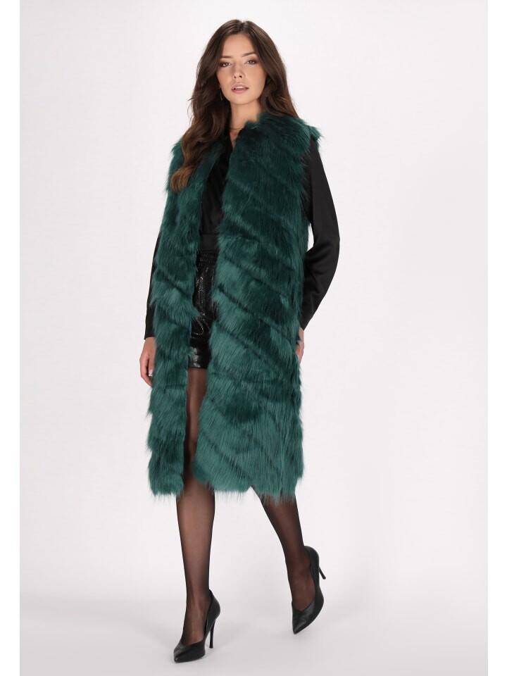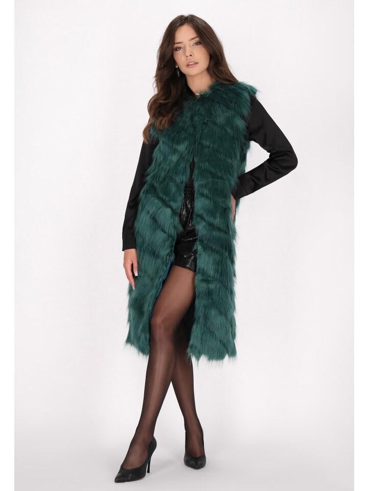 Наслаждайтесь роскошным очарованием этой одежды без рукавов, которая излучает изысканность и тепло. Текстурированная поверхность создает мягкую и пушистую эстетику. Этот жилет с прямым передним вырезом и круглым вырезом имеет узкий силуэт без видимых воротников и капюшонов. Идеально подходит для ношения поверх вашего наряда, его прямоугольная форма слегка сужается вверх, чтобы подчеркнуть область плеч.