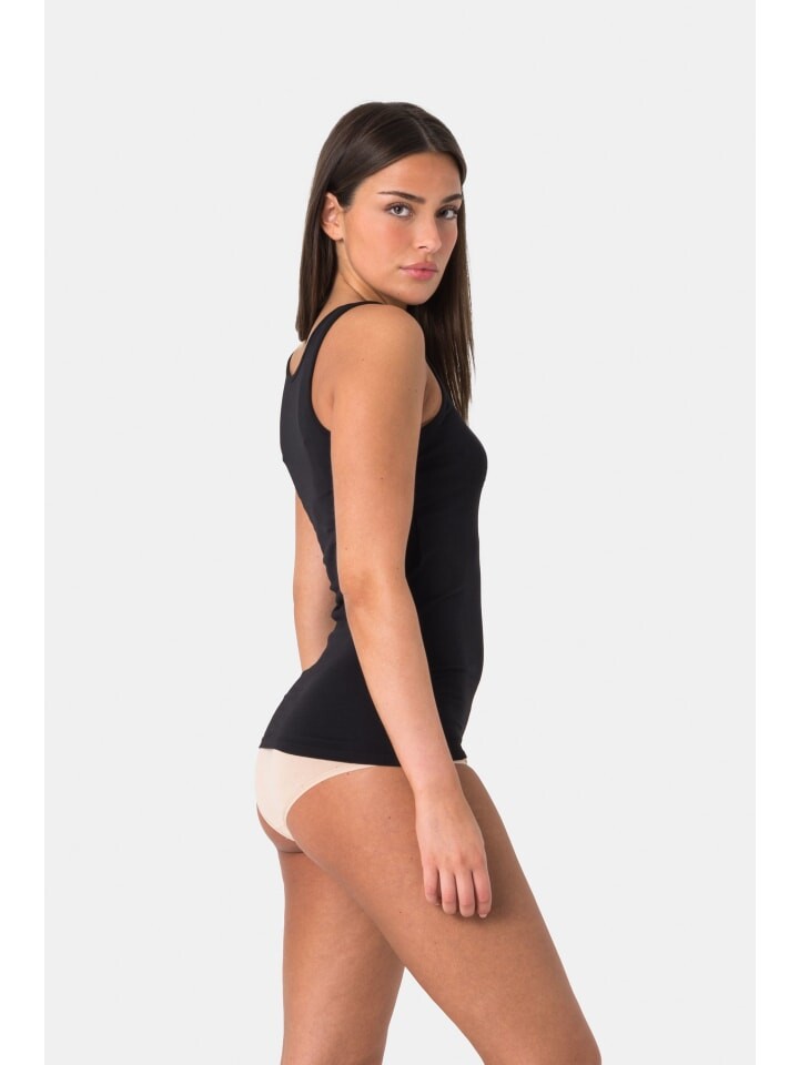 Удлиненная: майка представляет собой удлиненную женскую майку, которая не выскальзывает из брюк.
