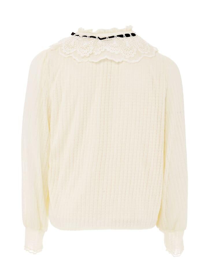 Украсьте свой гардероб этой изысканной блузкой с длинными рукавами. Структурированный узор в рубчик и богато украшенный воротник с кружевной отделкой излучают элегантность. Контрастная отделка и бантики добавляют нотку изысканности. Эластичные манжеты с планкой на пуговицах спереди и потайными пуговицами создают эффект оборок, создавая винтажный образ.