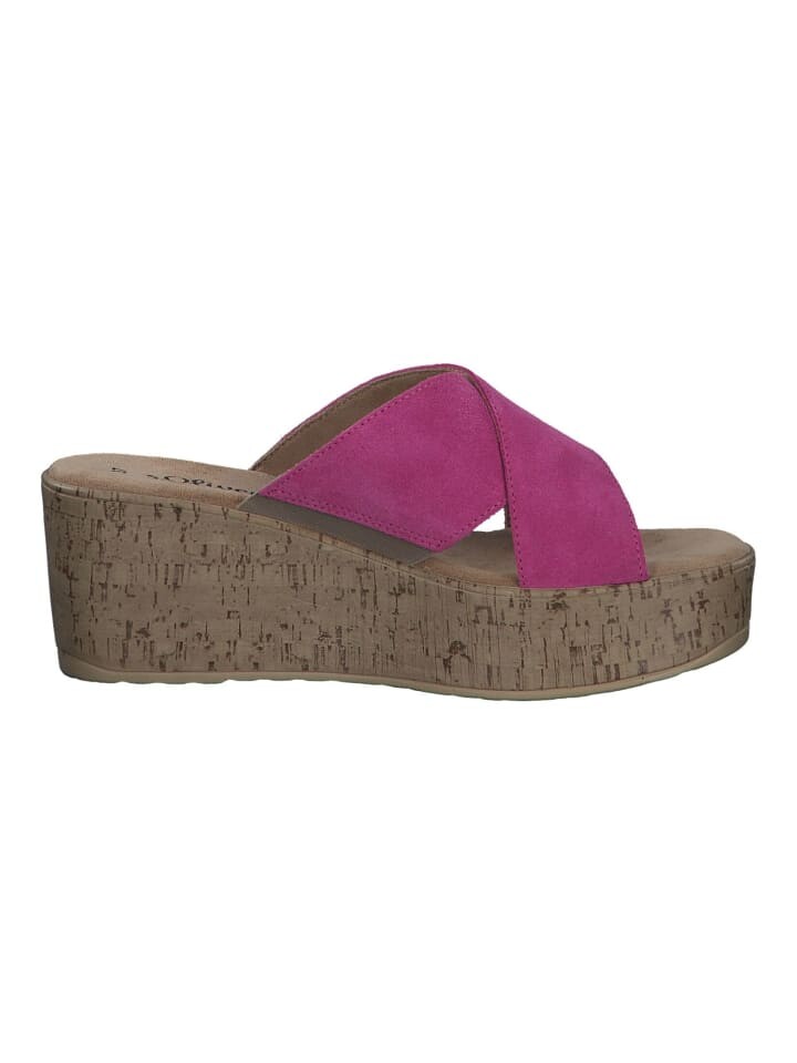 В этих модных мюлях от s.Oliver из высококачественной замши вы всегда в тренде. Пробковый клиновидный каблук не только создает красивый силуэт, но и широкие лямки обеспечивают надежную фиксацию стопы. Во всех отношениях удачная модель для теплых дней года.