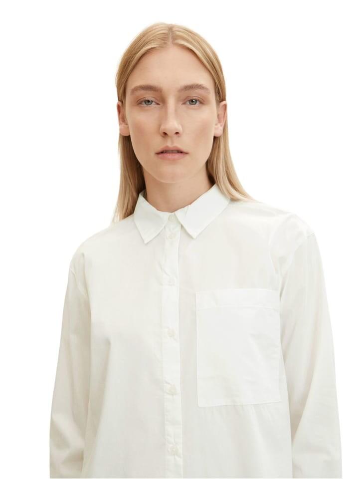Женская блузка Tom Tailor "POPLIN" с рубашечным воротником, белая, однотонная