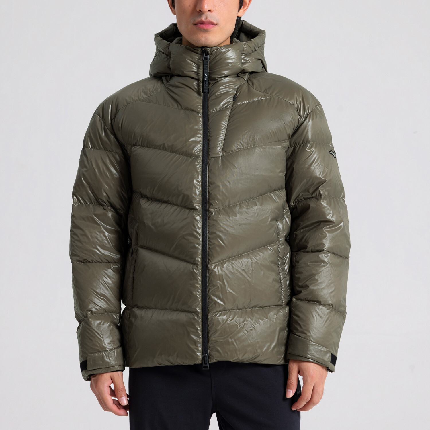 Пуховик унисекс Mizuno, оливково-зеленый