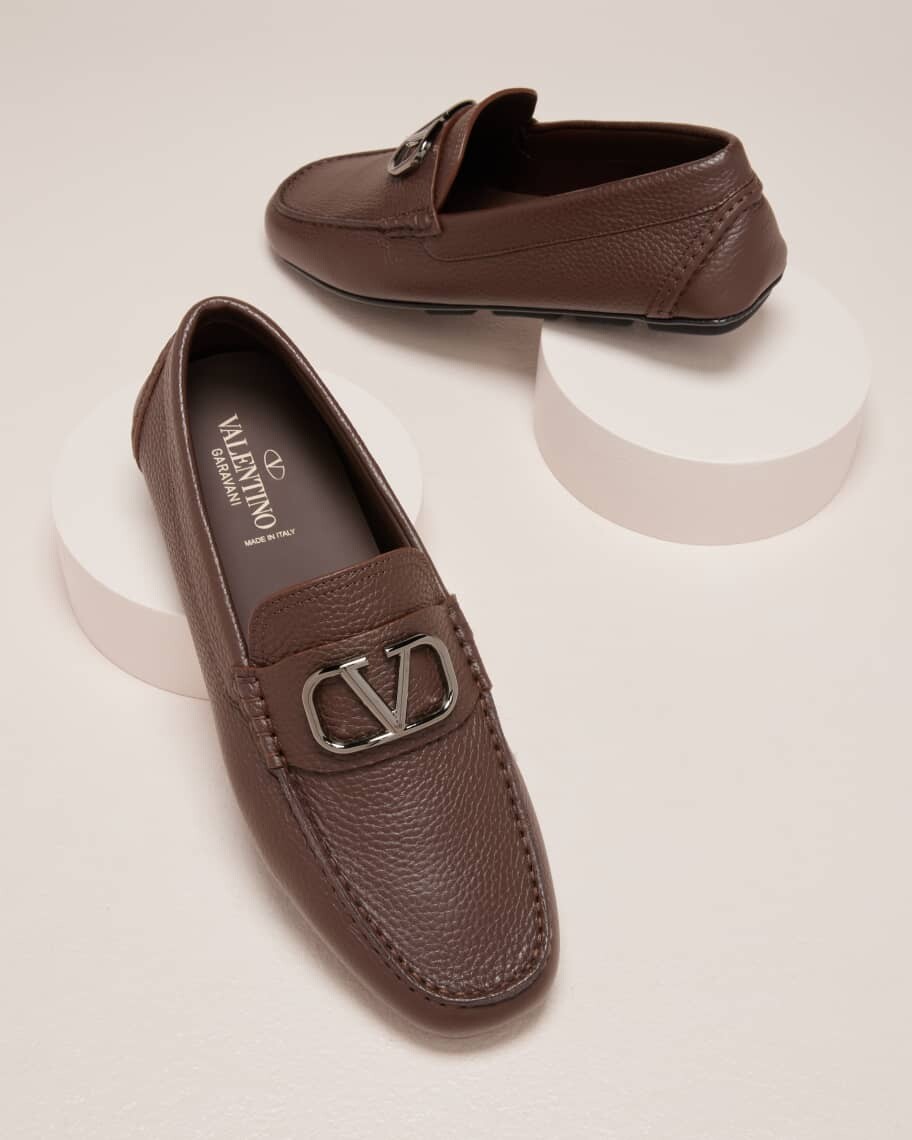 Мужские кожаные шлепанцы с V-логотипом Valentino Garavani