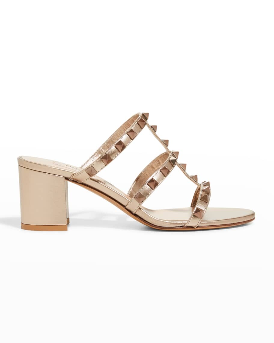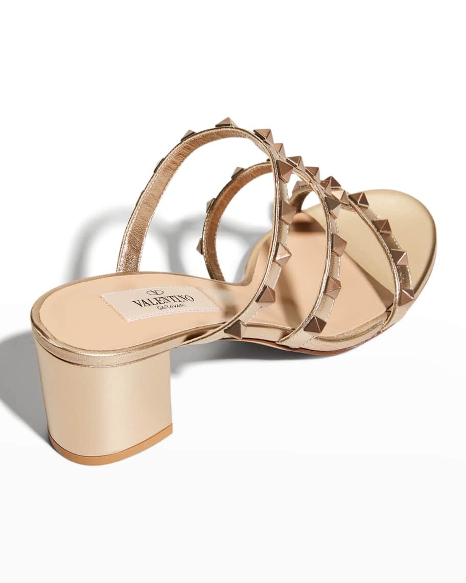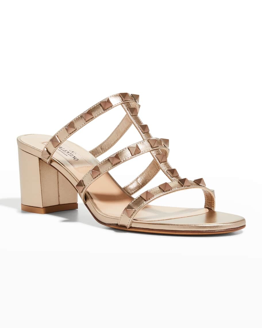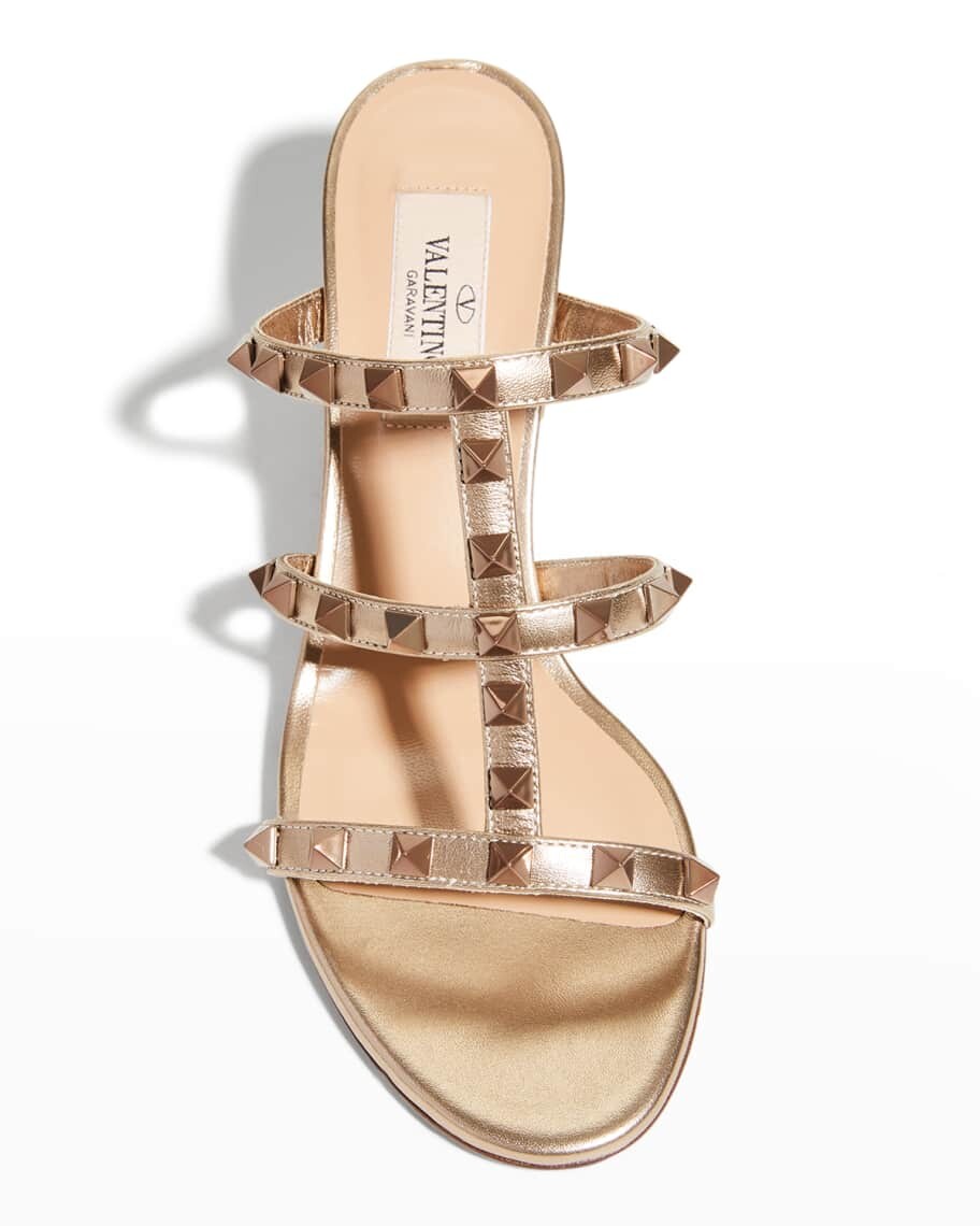 Металлизированные кожаные шлепанцы Rockstud Caged Valentino Garavani 94 129₽