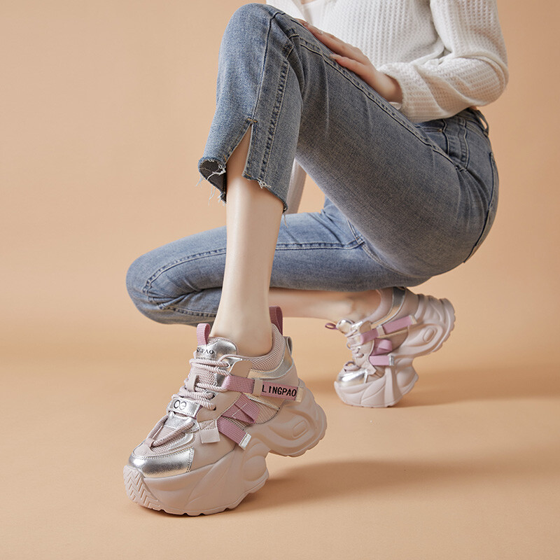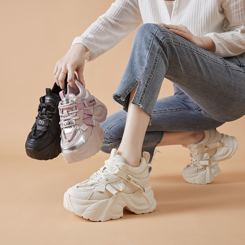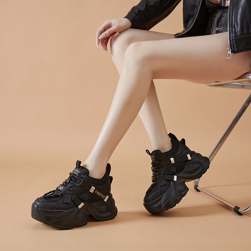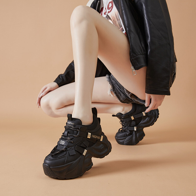 Кроссовки женские толстые низкие Lingpao, черный