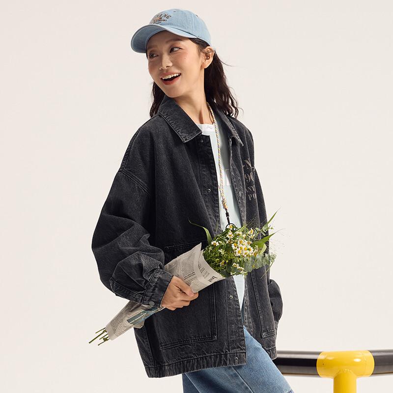 Выходные Молодежная джинсовая куртка унисекс черный ковбой Lining