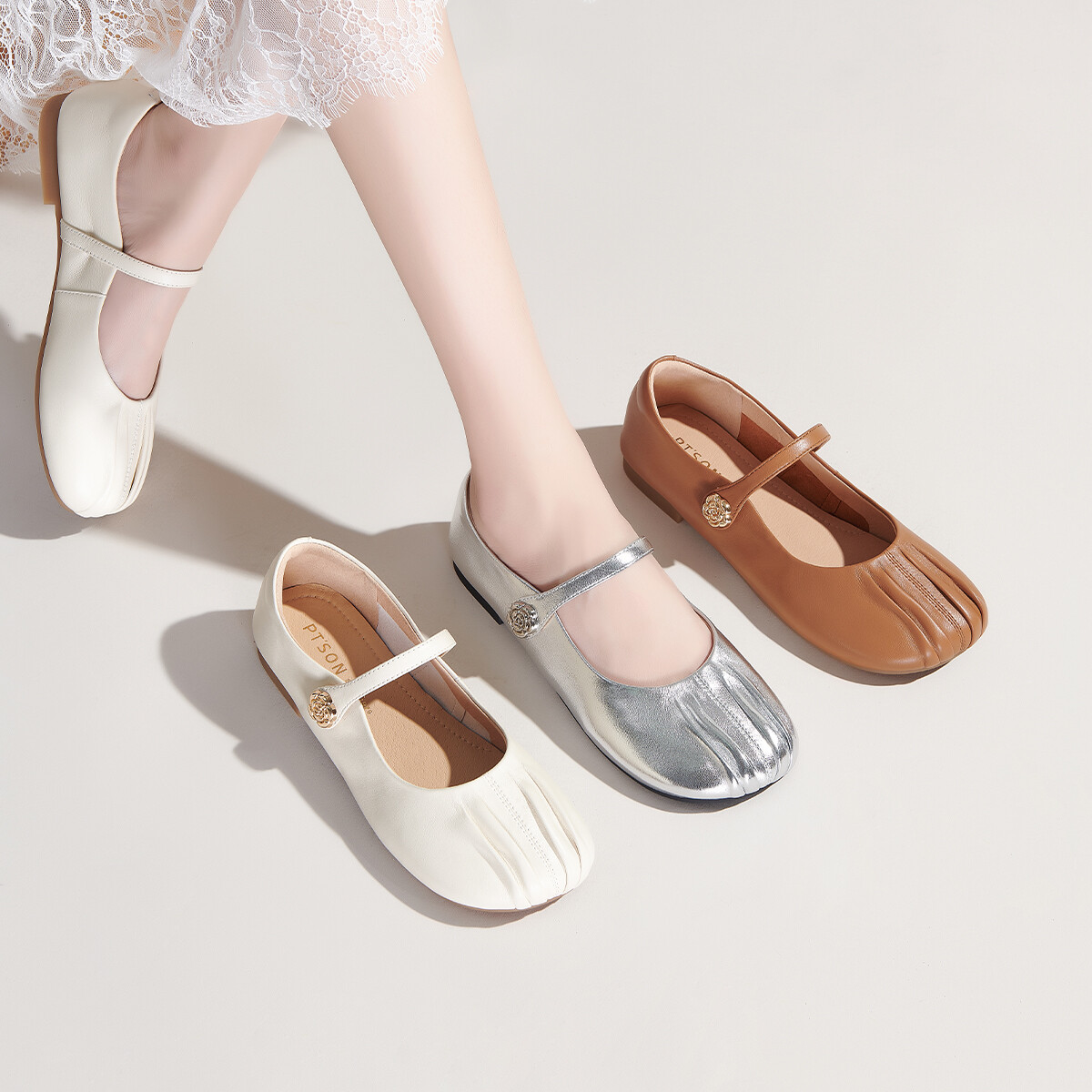 Туфли Мэри Джейн женские Pt'Son, серебряный