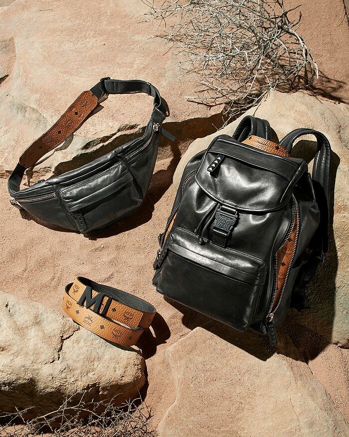 Гладкая матово-черная пряжка в форме буквы "М" и двусторонний дизайн придают фирменный стиль этому универсальному ремню от MCM.