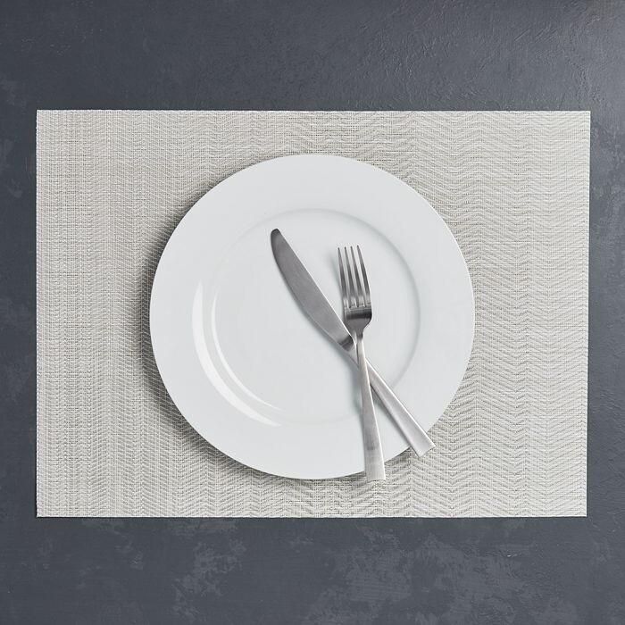 Фирменная двухцветная пряжа Chilewich уникально переплетена в элегантный шевронный узор, который создает интригующую, но утонченную текстуру.