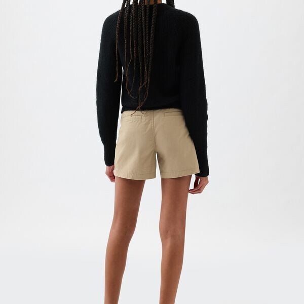 Шорты-чиносы из эластичного хлопка. Средняя посадка. Два косых кармана и два прорезных кармана сзади. Потайная застежка на крючок и молнию внутри.