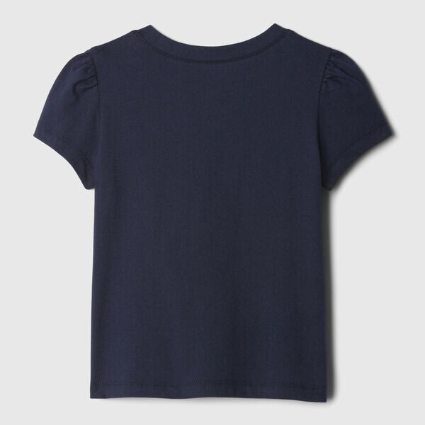 Футболка из 100% хлопка. Круглый вырез. Короткие рукава-фонарики. Принт логотипа с маленькими цветами на груди.