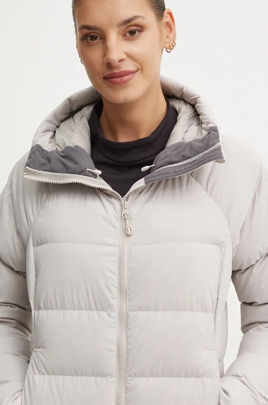 - Модель утеплена натуральным пухом RENU, переработанным. Его производство позволяет повторно использовать бесполезные бытовые отходы, делая их экологически чистыми. Пух покрыт гидрофобным покрытием DWR Hyper