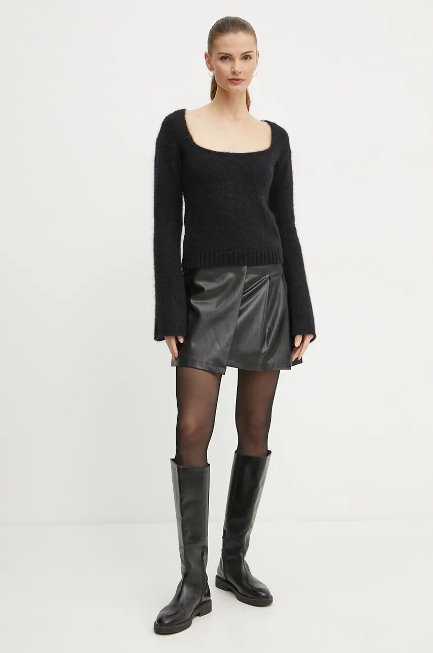 Свитер Pinko выполнен из однотонного трикотажа. Шерсть, обладающая высокими терморегулирующими свойствами, помогает сохранять тепло, когда холодно, и прохладу, когда жарко.