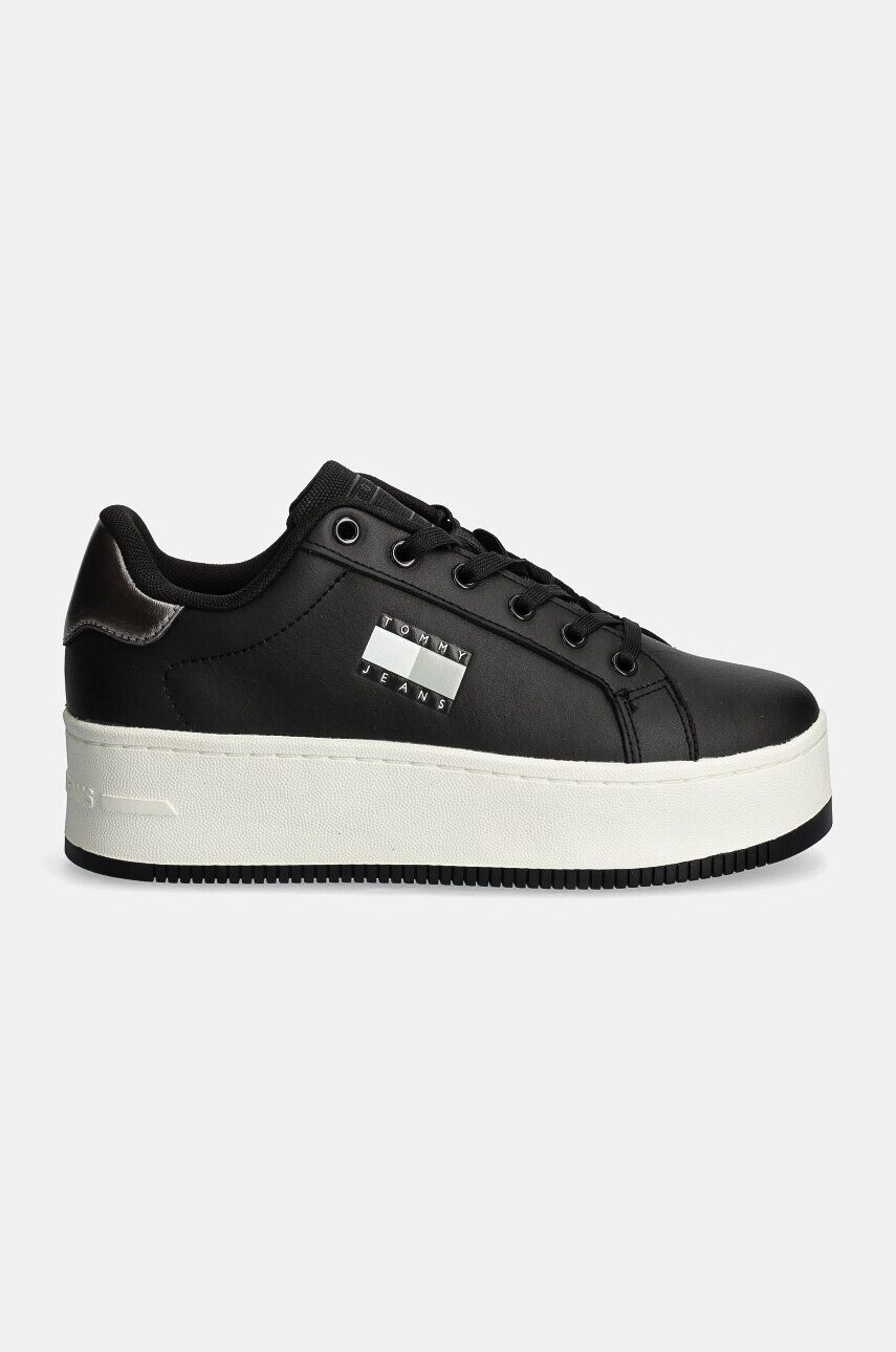 Кожаные кроссовки Tommy Jeans TJW FLATFORM SNEAKER METALLIC, черный