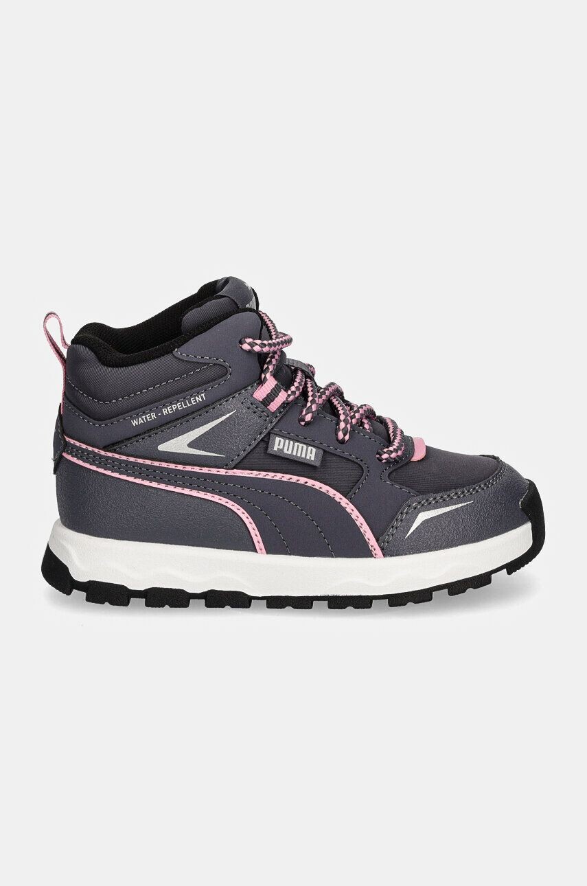 Детская обувь Пума. Изготовлен из водонепроницаемой мембраны, обеспечивающей высокий уровень амортизации.