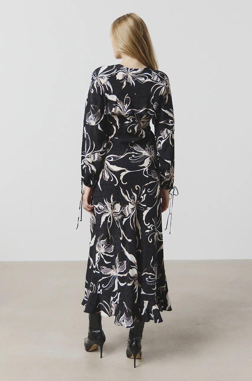 Платье Answear Lab. Изготовлен из узорчатой ​​ткани. Модель изготовлена ​​из чрезвычайно комфортной и дышащей ткани.