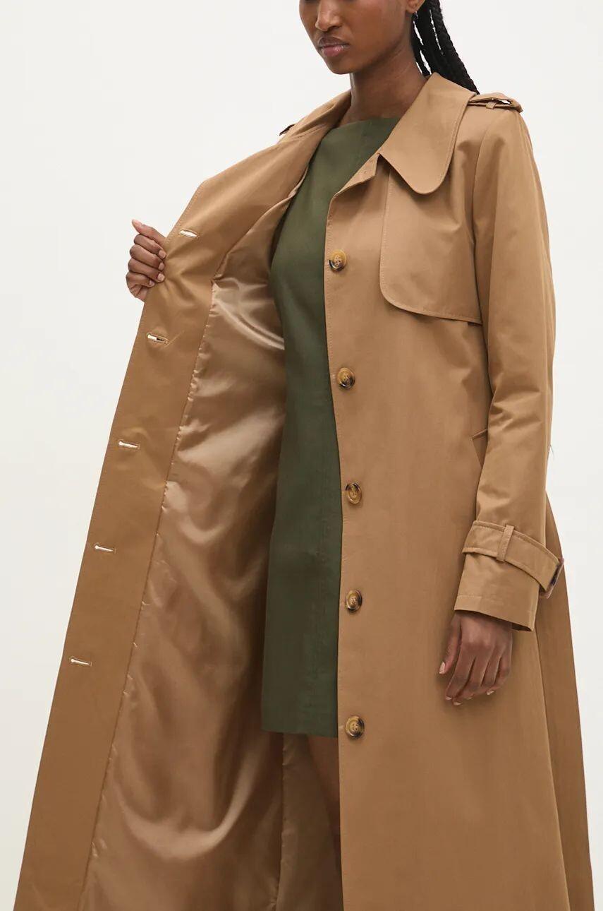 Тренч Answear Lab. Изготовлен из неутепленной однотонной ткани. Содержание полиэстера делает материал более устойчивым к морщинам.