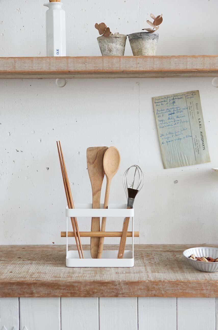 Полка для кухонных принадлежностей из коллекции Yamazaki. Изготовлен из стали и дерева.