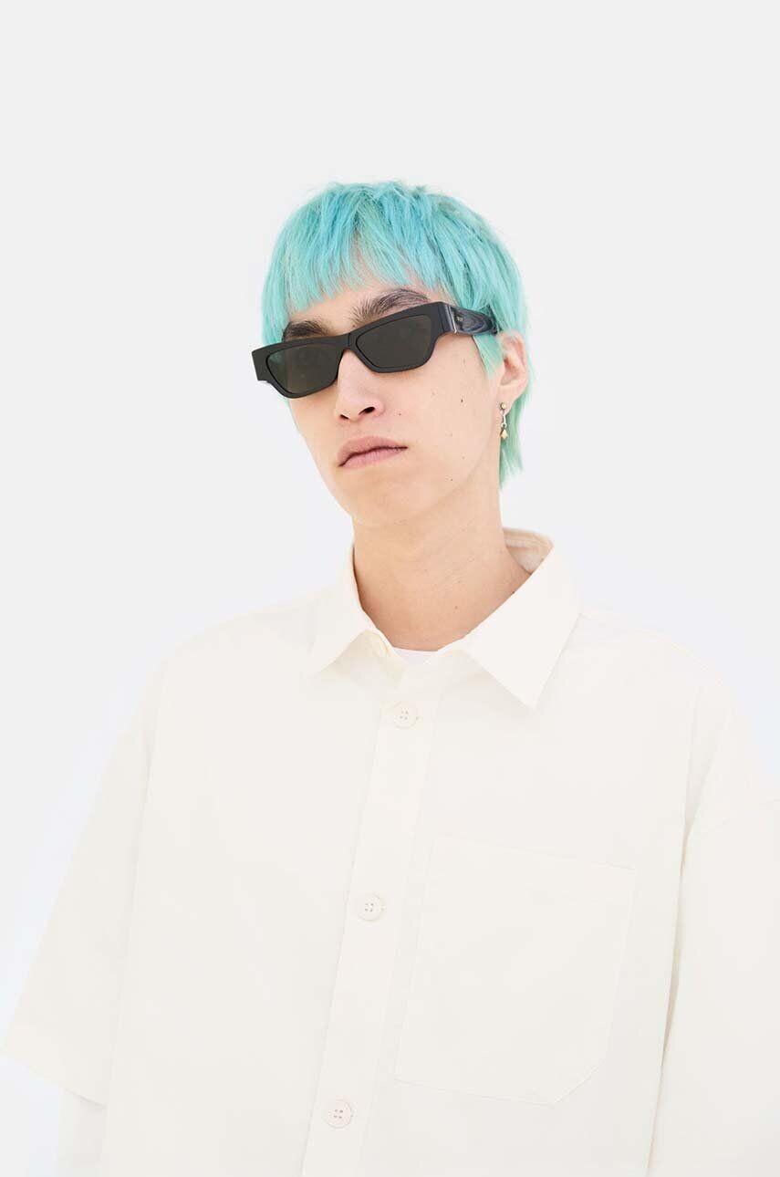 Солнцезащитные очки в стиле ретросупербудущего. Модель с однотонными линзами и пластиковой оправой. С фильтром UV 400.