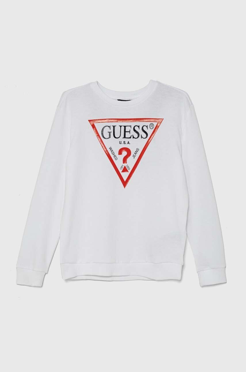 Guess детский свитшот. Модель из трикотажного полотна с принтом. Модель изготовлена ​​из очень комфортной хлопковой ткани.