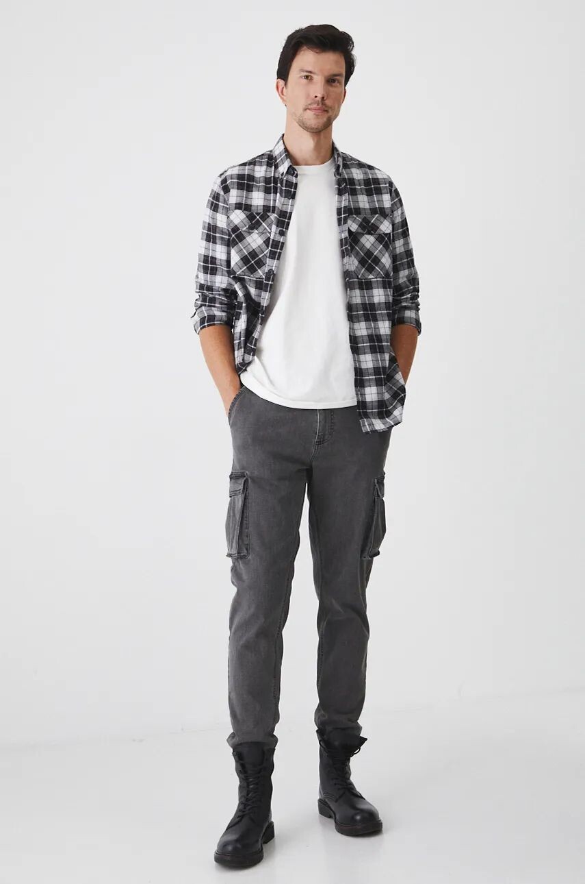 - Модель со стандартной талией, застежкой на пуговицу и молнию.
