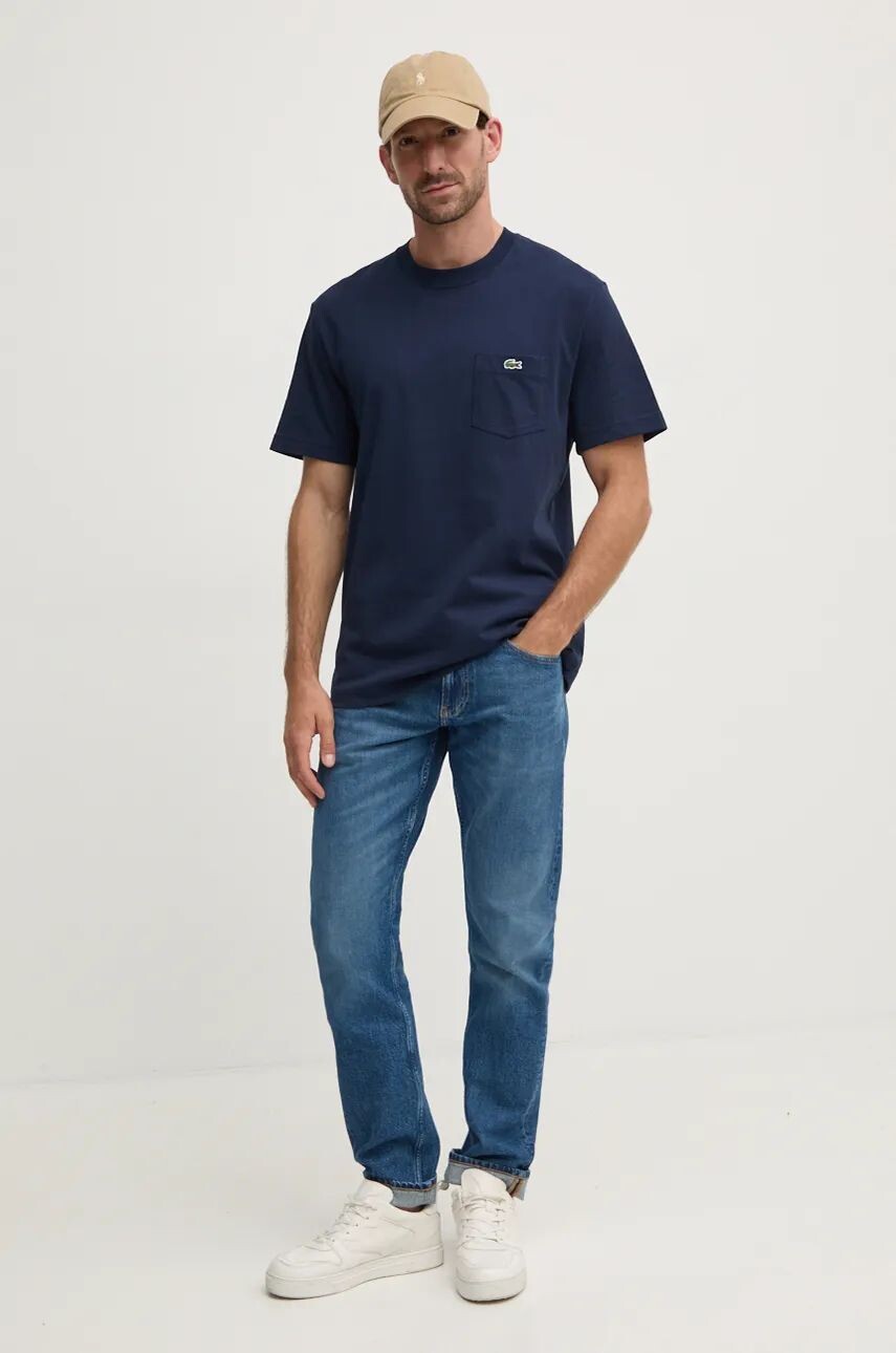 Хлопковая футболка Lacoste, темно-синий