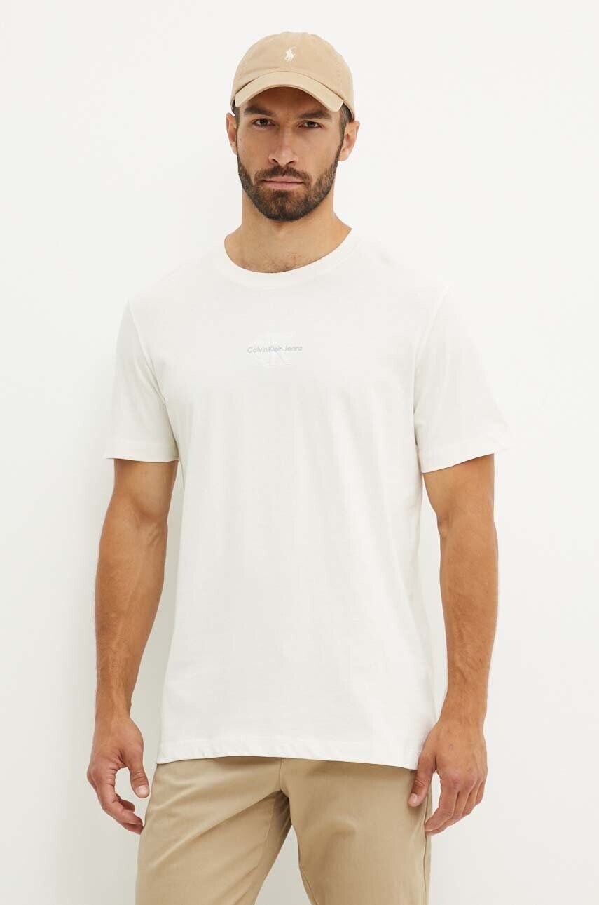 Хлопковая футболка Calvin Klein Jeans, бежевый