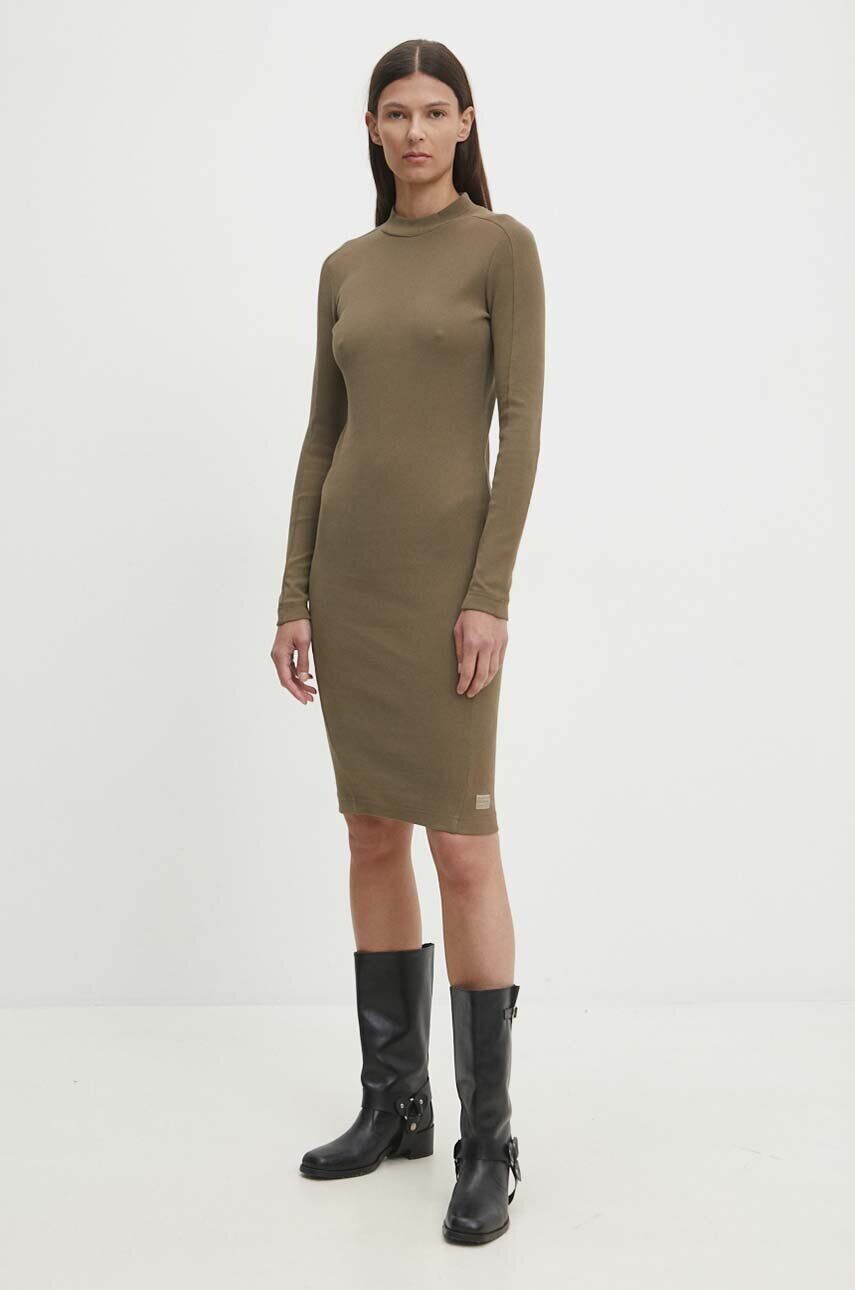 Платье G-Star Raw. Изготовлен из ребристой трикотажной ткани. Модель изготовлена ​​из дышащего материала с высоким процентом хлопка.
