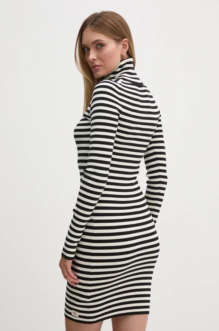 Платье Calvin Klein Jeans. Изготовлен из однотонного эластичного трикотажа. Модель изготовлена ​​из чрезвычайно комфортной ткани с высоким процентом хлопка.