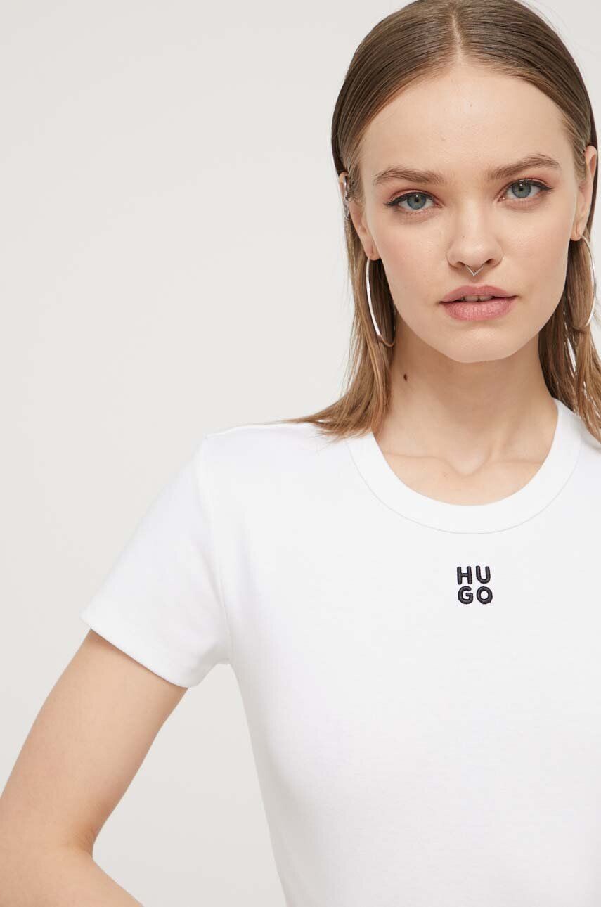 HUGO Трикотажная футболка с аппликацией. Модель изготовлена ​​из чрезвычайно комфортной ткани с высоким процентом хлопка.