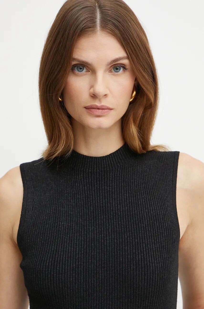 Жилет BOSS выполнен из тонкого эластичного трикотажа. Ткань из блестящей металлизированной пряжи.