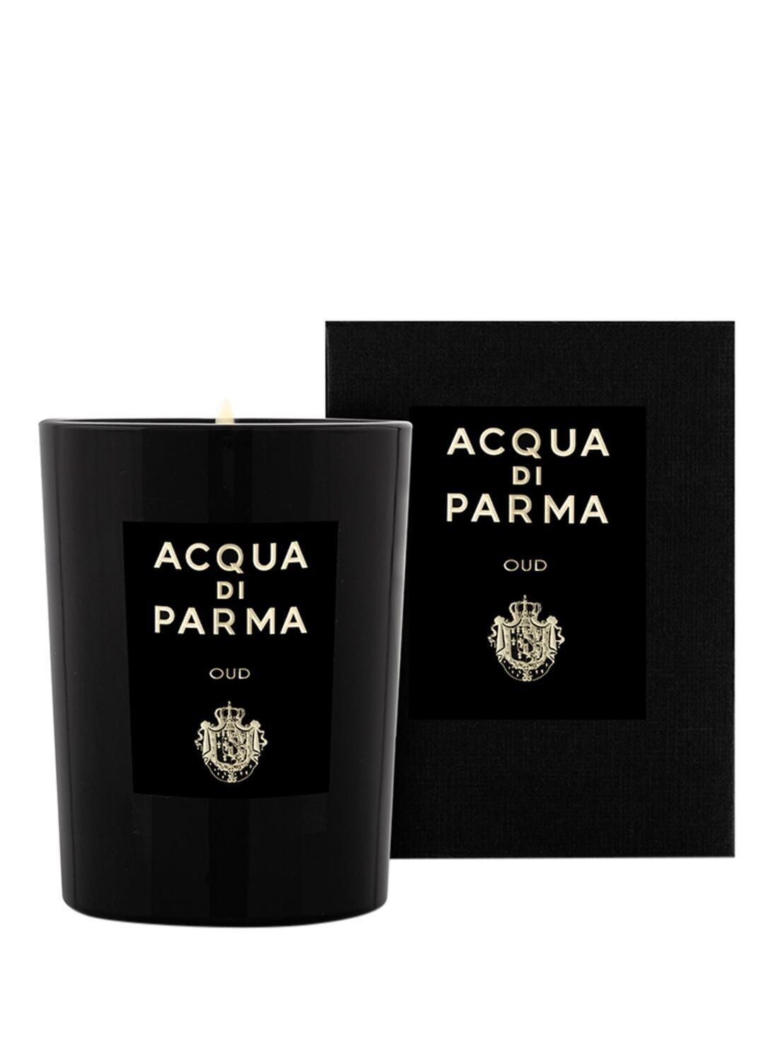 Свеча Oud с нотами, выражающими богатство редкого и драгоценного масла агарового дерева, является воплощением парфюмерного искусства Signatures of The Sun, придавая призме солнца богатую и загадочную интерпретацию. Свеча, изготовленная из белого растительного воска в глянцевом черном лакированном стеклянном сосуде, распространяет интенсивные и сильные ароматы уда по всему дому. Ароматическая свеча из коллекции Home Collection создает атмосферу, в которой привлекательная и мощная сущность агарового дерева ведет к открытию чувственности. Свеча весом 200 г поставляется в складной внешней упаковке из черной бумаги FSC с роскошной черной матовой этикеткой с логотипом Acqua di Parma, оттиснутым горячей золотой фольгой.
