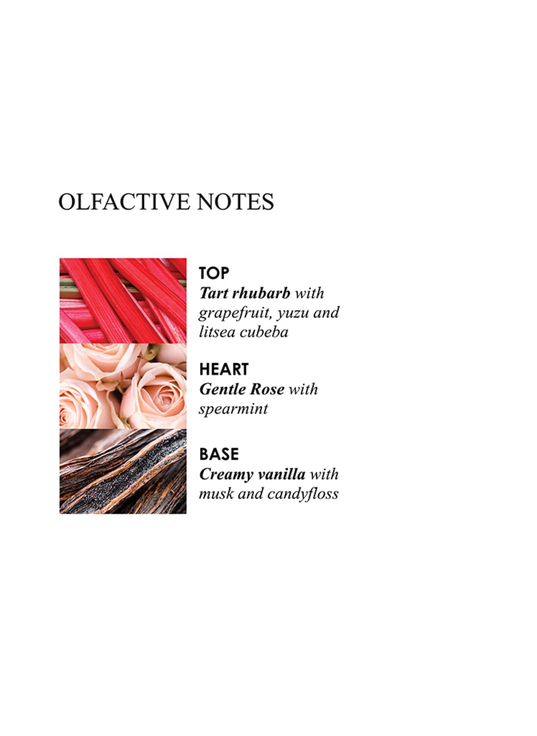Средние ноты: лист ревеня, роза, мята