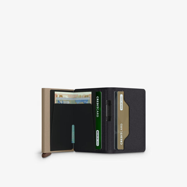 Вмещает 4 тисненые или 6 плоских карт, 4 дополнительных карты, банкноты и визитки, водостойкое покрытие, не содержит ПВХ и растворителей,