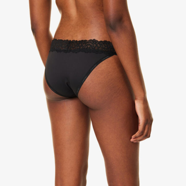 Фасона бикини, средняя посадка, эластичный кружевной пояс, фирменная отделка, подкладка-ластовица, умеренная степень защиты