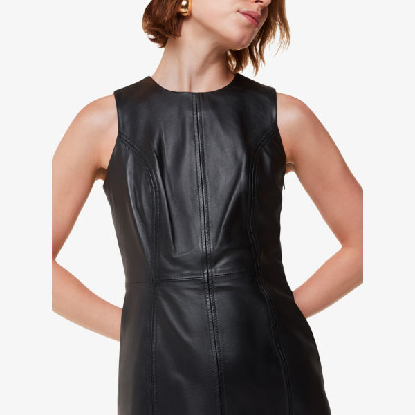Кожаное мини-платье прямого кроя без рукавов Whistles, черный