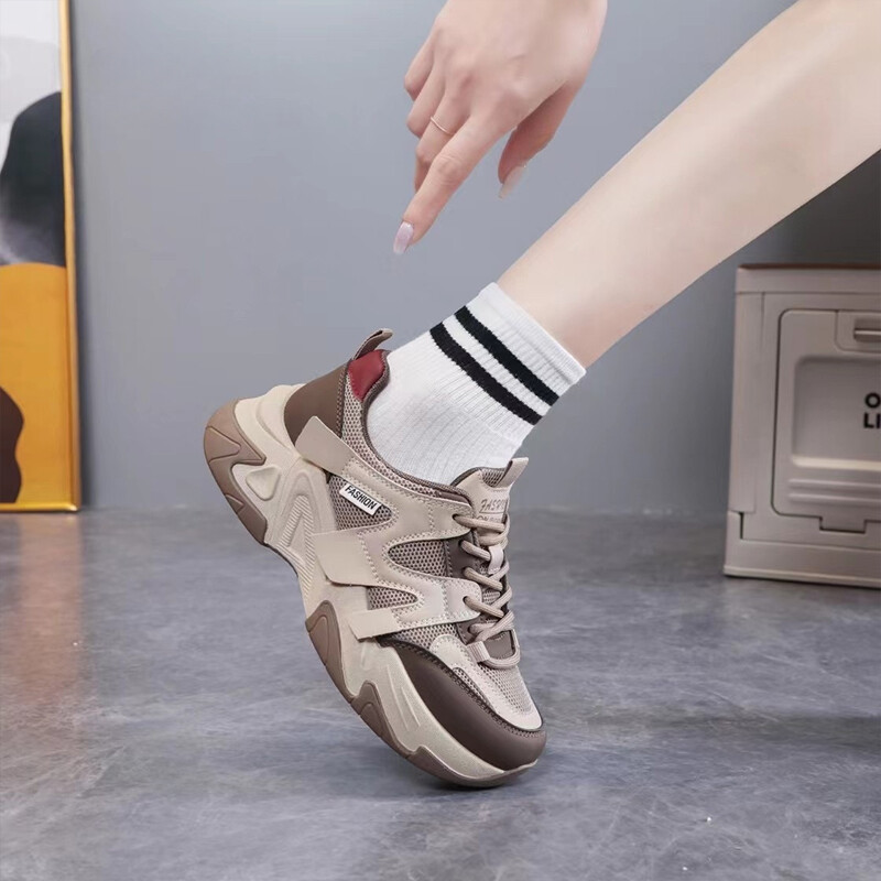 Кроссовки женские толстые низкие Wenpu, коричневый