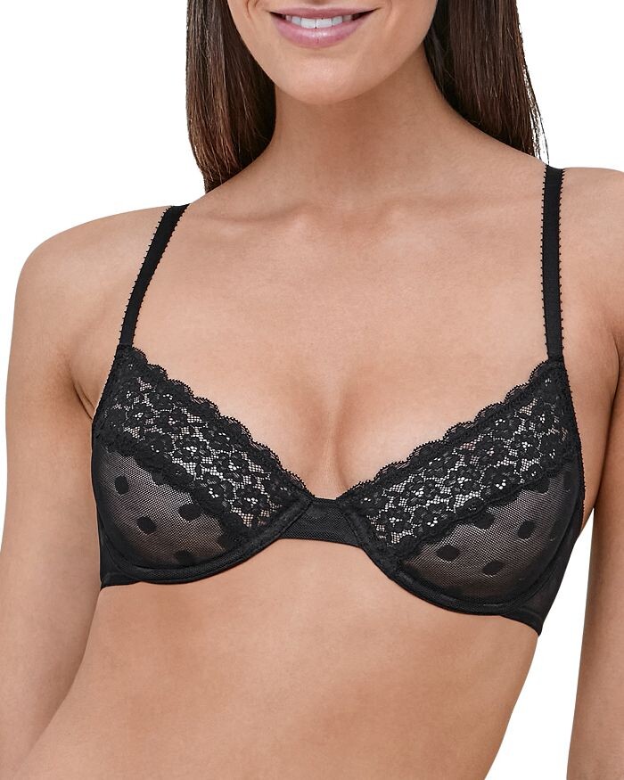 Чашки на косточках без подкладки; прозрачное боди из эластичной сетки в горошек с кружевной отделкой