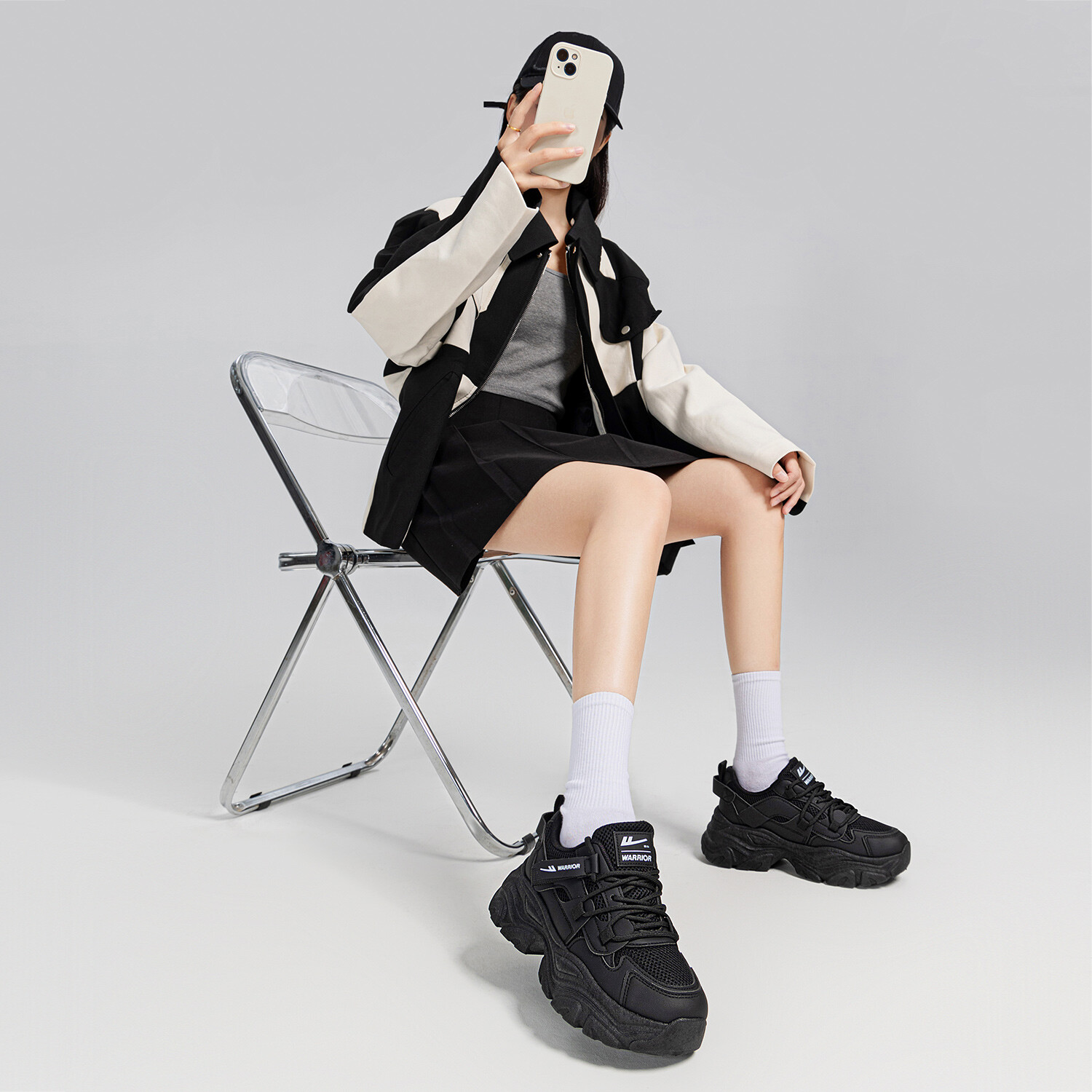 Кроссовки женские толстые низкие черный Warrior