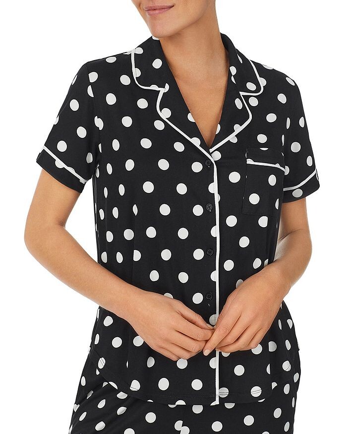 Верх: воротник с вырезом, короткие рукава, застежка на пуговицы спереди, нагрудный накладной карман, контрастная окантовка, сплошной принт,