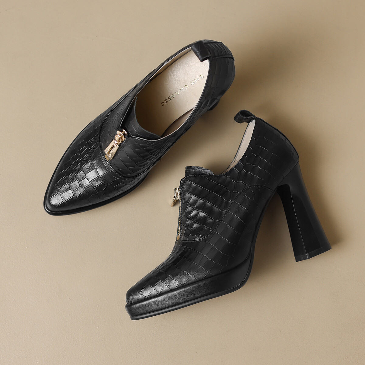 Туфли женские на высоком каблуке Zhr, черный