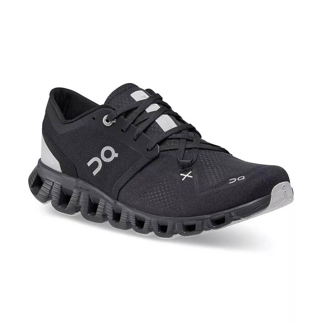 Черные кроссовки ON Cloud X 3. Пластина Speedboard с впрыском жидкости для минимизации ударов. Протектор обеспечивает плавное движение для беспрепятственного бега.