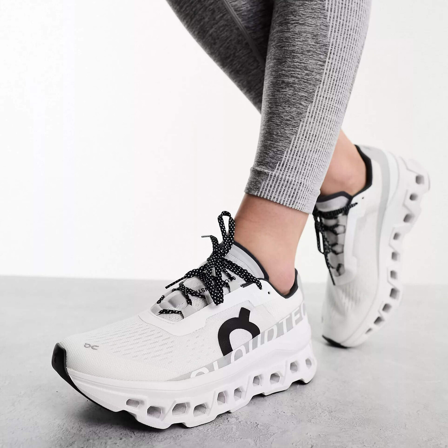 Белые кроссовки ON Cloudmonster. Низкопрофильный дизайн. Пена CloudTec обеспечивает легкую и амортизирующую амортизацию. Технология Speedboard для быстрой отдачи энергии. Толстая широкая подошва предназначена для дополнительной поддержки. Текстурированный протектор.