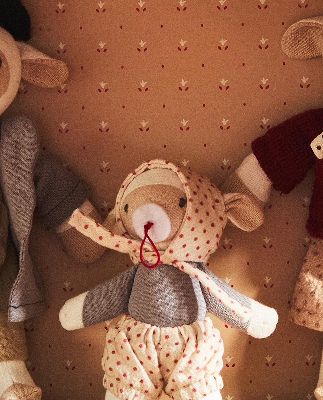 Детский набор мягких игрушек в виде овечек, одетых в пальто, вязаный свитер с бантом и распашонки с чепчиком. В набор входят 3 разные мягкие игрушки.