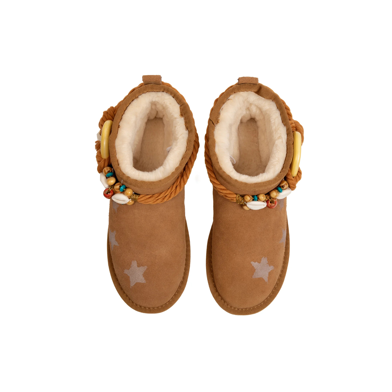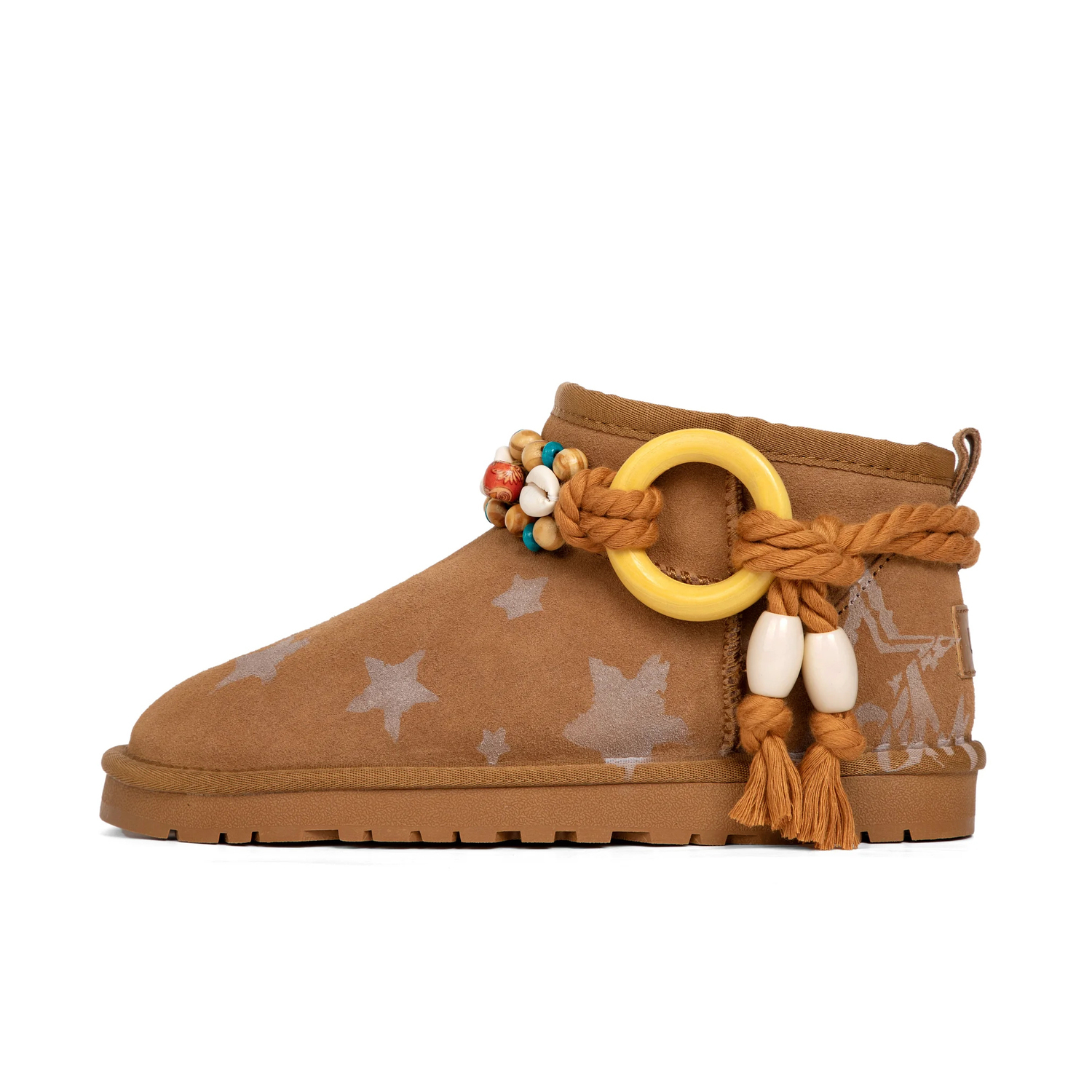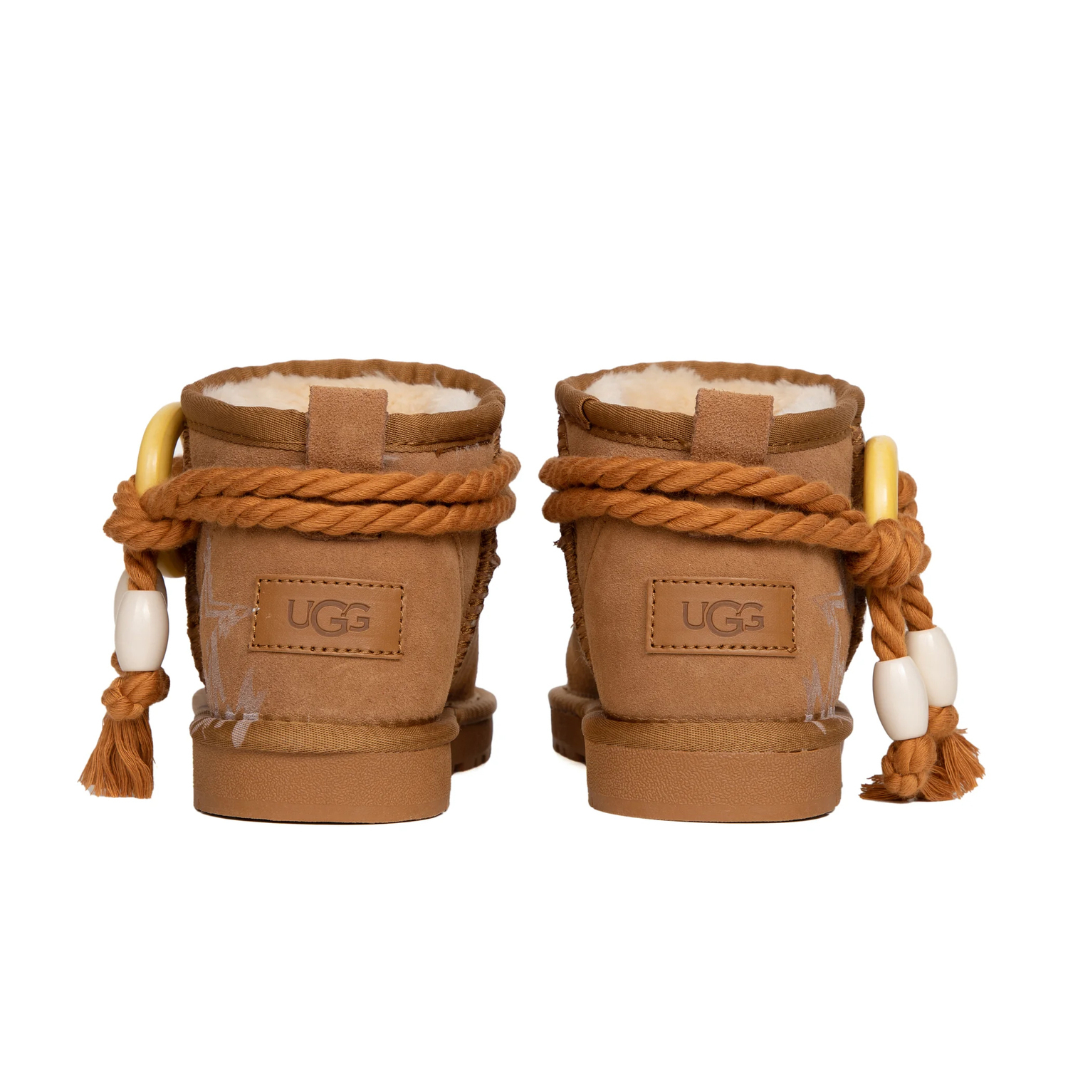 Ботинки зимние UGG Classic Ultra Mini с принтом и декором, темно-коричневый